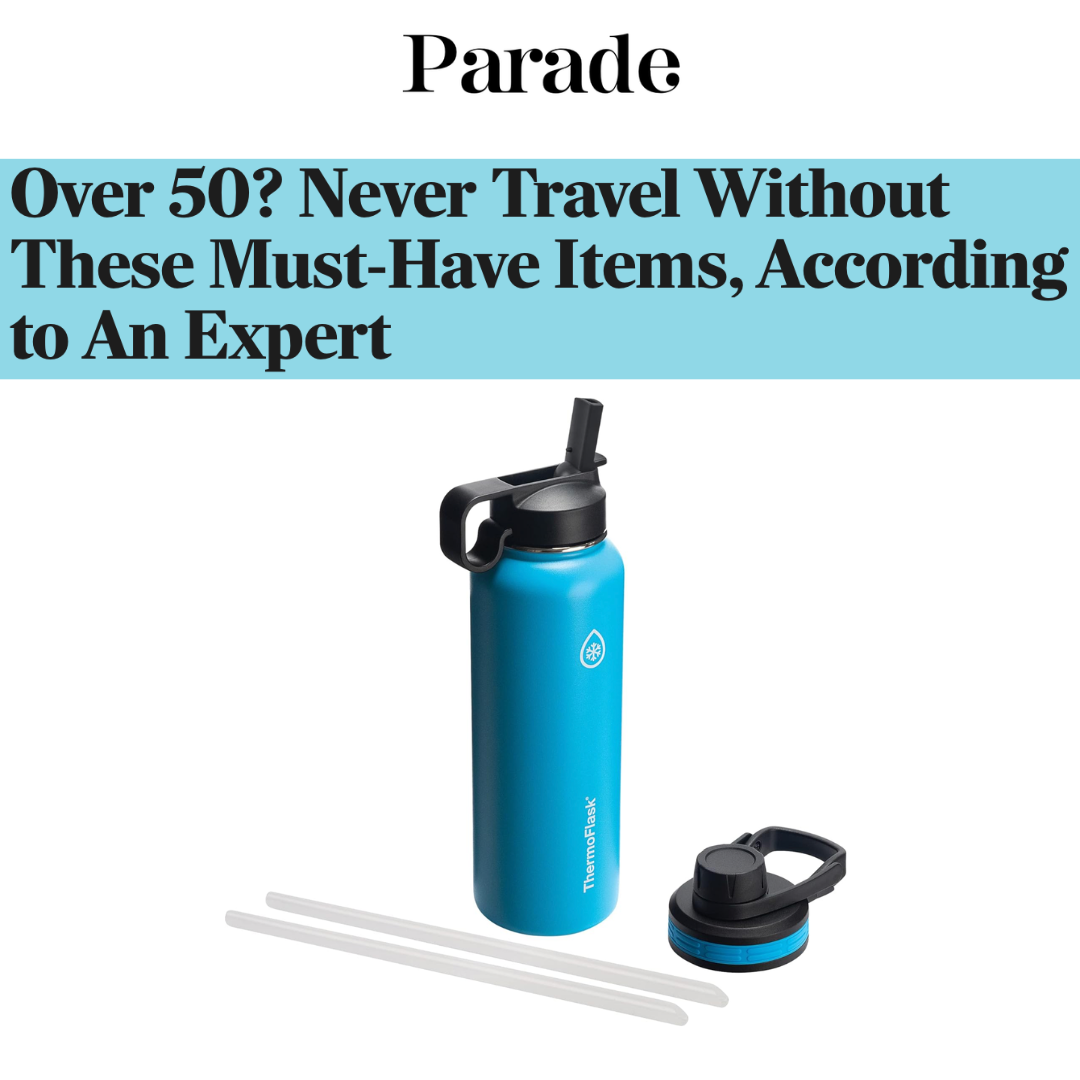 Parade put together a guide of items you should never travel without and included ThermoFlask’s 24-Ounce Water Bottle.