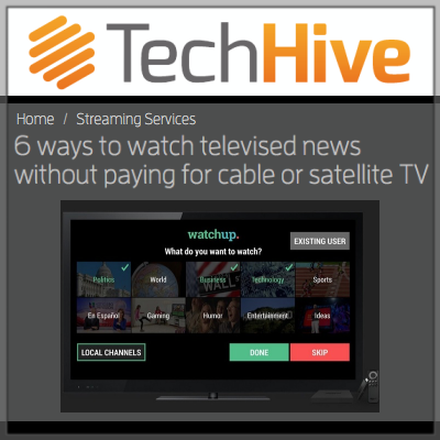 /Watchup made TechHive’s list of the “6 ways to watch televised news without paying for cable or satellite TV.”