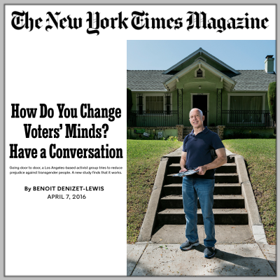 /Benoit Denizet-Lewis wrote an in-depth feature for New York Times Magazine about a groundbreaking new study showing how door-to-door canvassing can reduce prejudice against transgender people.