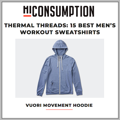 HiConsumption named the “Movement Hoodie” by Vuori one of “The 15 Best Men’s Workout Sweatshirts.”